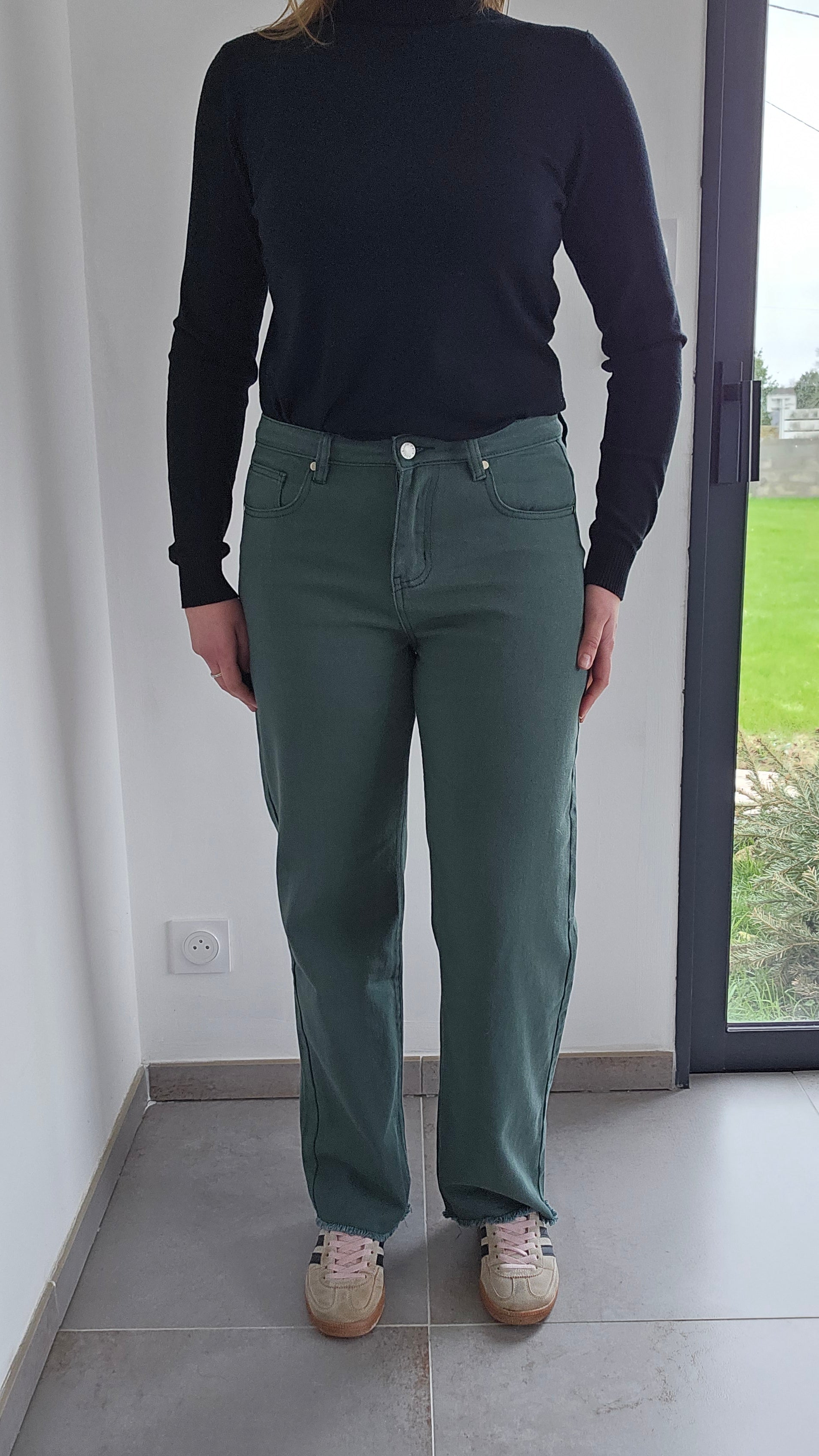 Frangé en bas du pantalon et légèrement raccourci