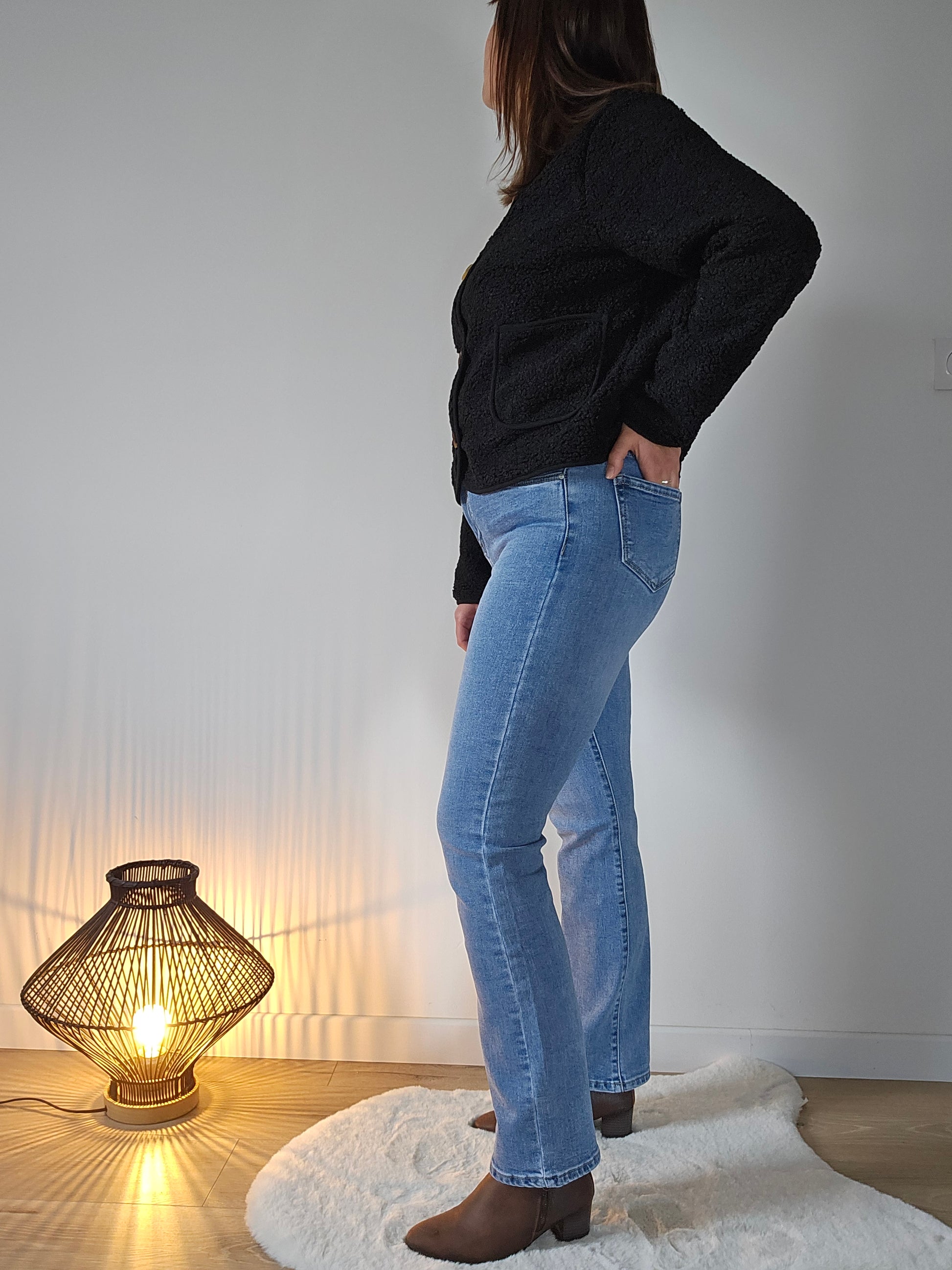 Ce jeans à coupe droite offre un équilibre parfait entre confort et style classique. Conçu pour une silhouette épurée, il s’adapte à toutes les morphologies tout en assurant une grande liberté de mouvement. Sa coupe structurée garantit une tenue irréprochable au quotidien, faisant de ce modèle un indispensable du dressing féminin. Durable et polyvalent, il se combine aisément avec une grande variété de tenues, du casual au plus sophistiqué.