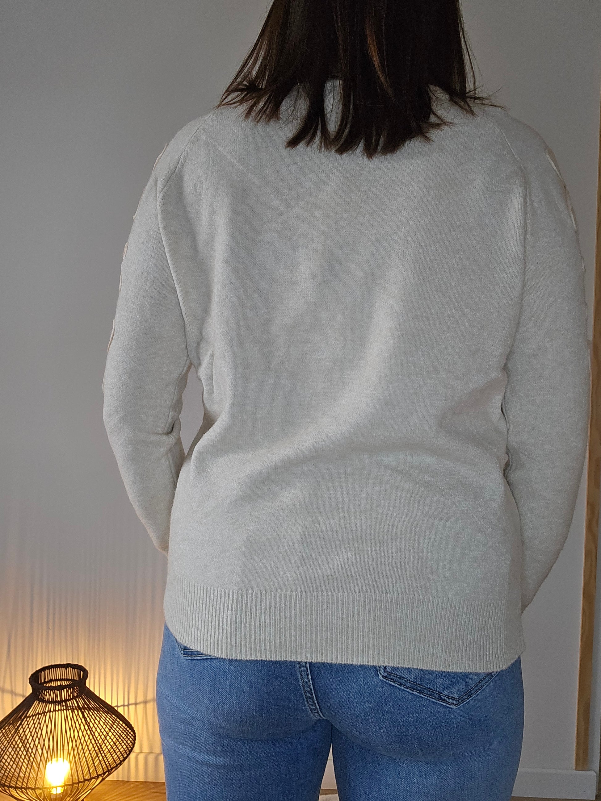 Pull floral en maille, doux et confortable, composé de viscose, polyester et polyamide.