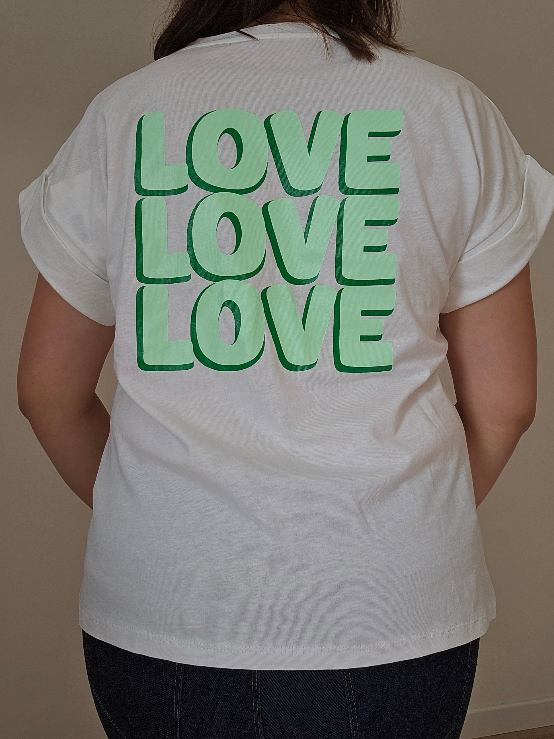 Ce T-shirt imprimé "Love" en taille unique offre un design simple et universellement adapté. Sa coupe confortable convient à diverses morphologies, assurant un porté agréable tout au long de la journée. Idéal pour un look décontracté avec une touche d’originalité.